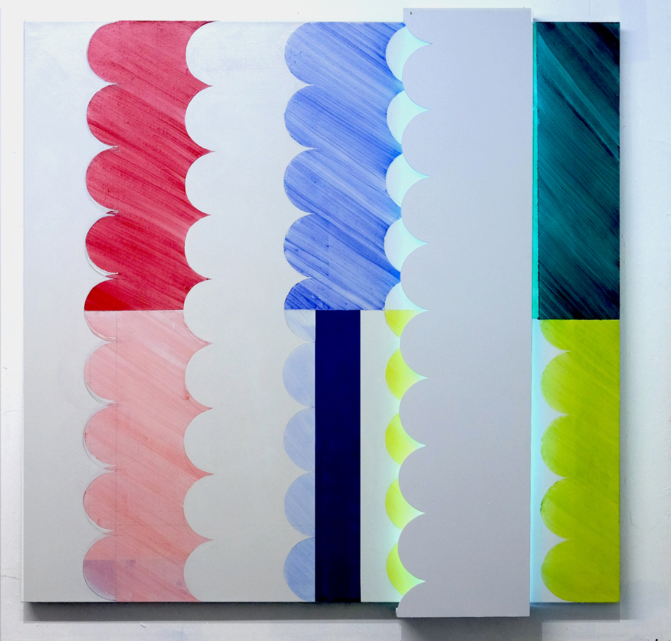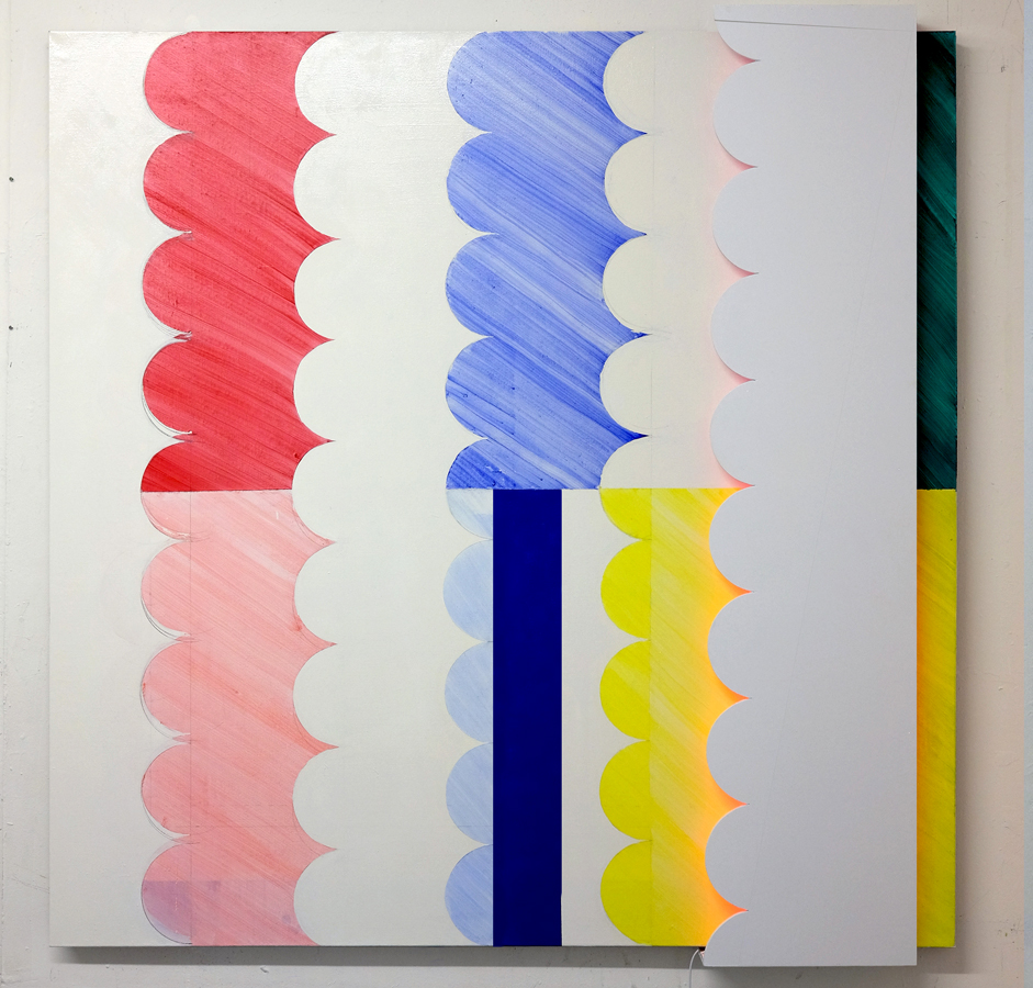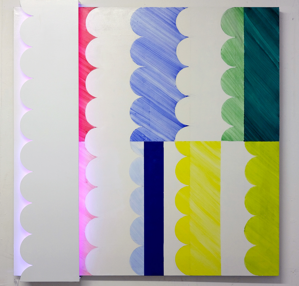 이 작품은 "코어 서칭 드로잉"을 평면에 적용하여 제작된 "스키매팅 페인팅"이다. 나는 회화를 미디엄으로 삼아, 오브젝튀얼한 접근 방식과 색상에 반사되는 조명 효과를 통해 인상주의에서 강조된 빛의 개념을 재해석하였다.
